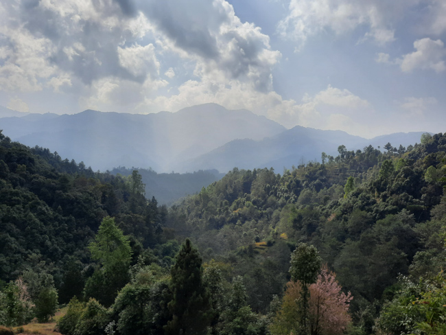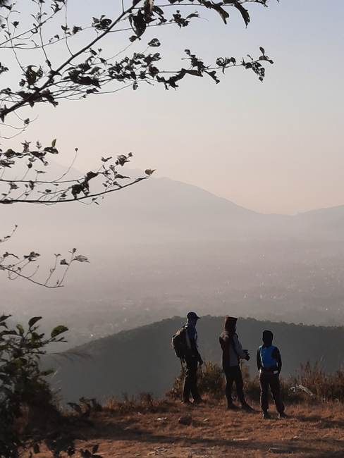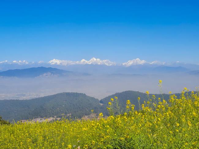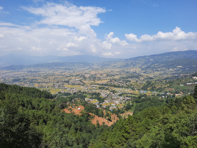 | A village and jungle climb to Maligaon rewarded by a sweeping panorama of the city, hills and snowcapped mountains - the widest seen from any point in the valley | |